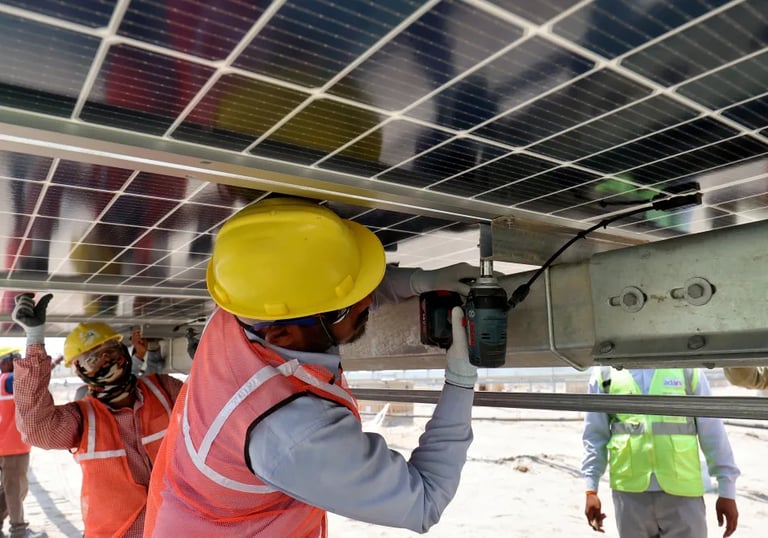Large-scale solar installations powering industries.